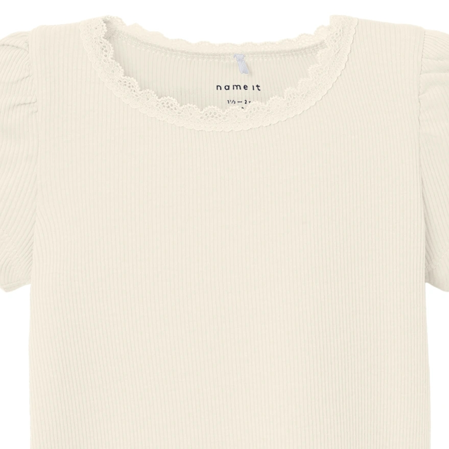 En sød Name It T-shirt med rib og blondekant.