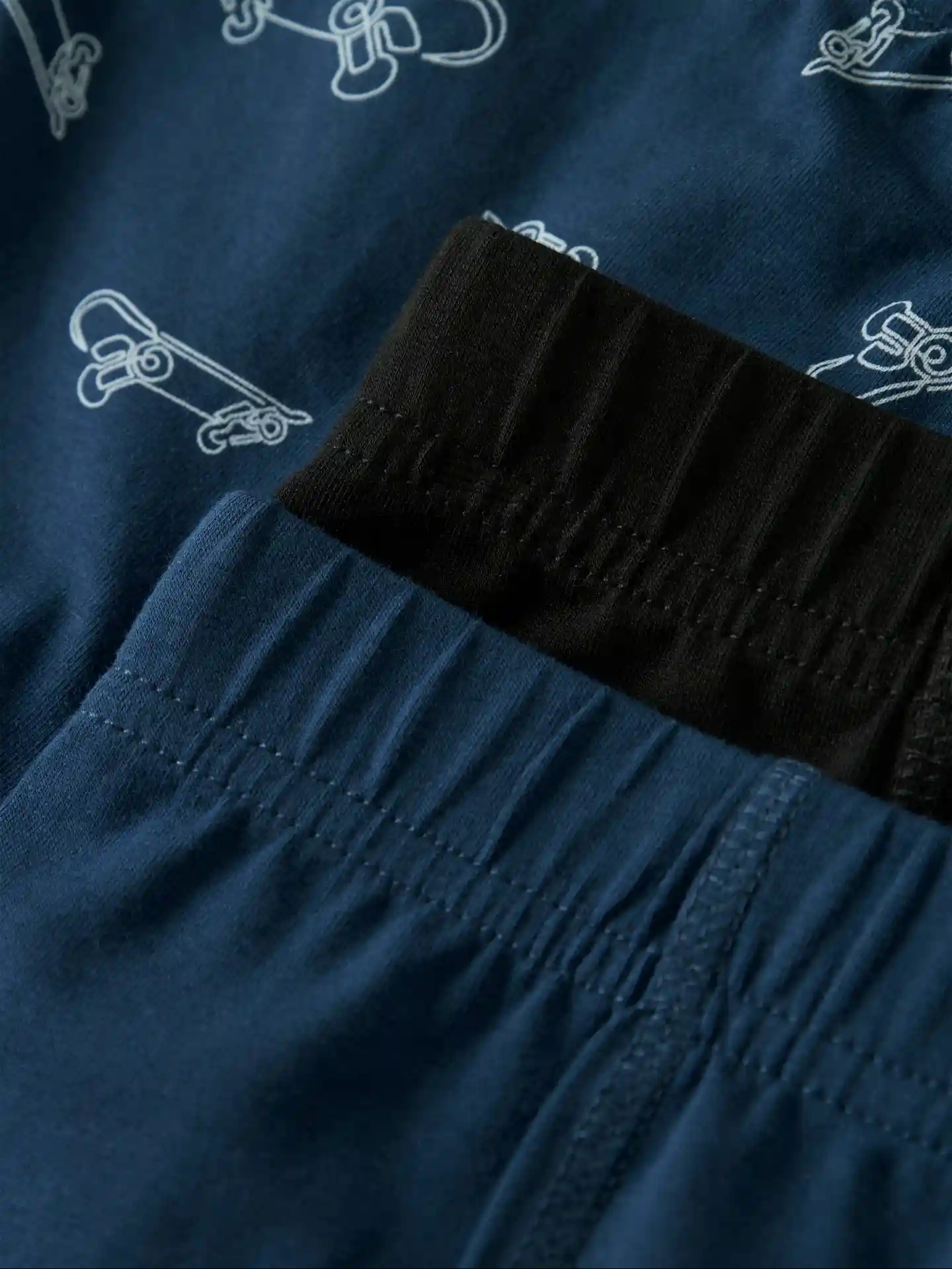Pakken indeholder et par Name It underbukser i ensfarvet blå, ensfarvet sort og en i blå med hvidt print af skateboards.