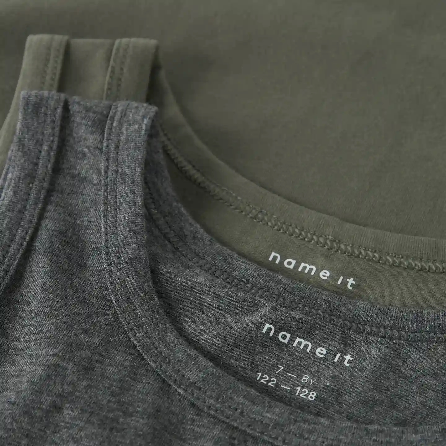 Name It Undertrøje - NkmTank - 2-pak - Tea Leaf / Dark Grey Melange