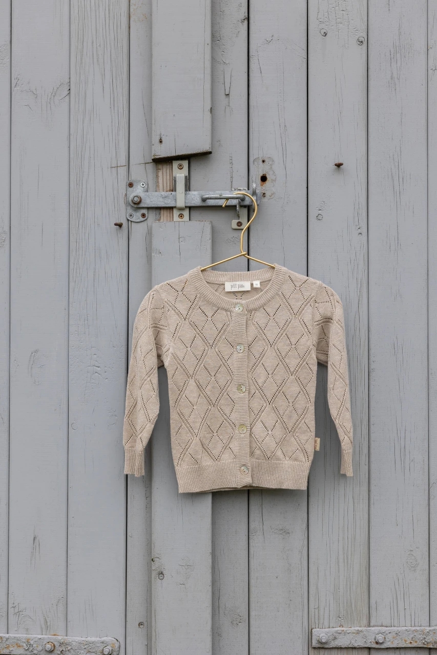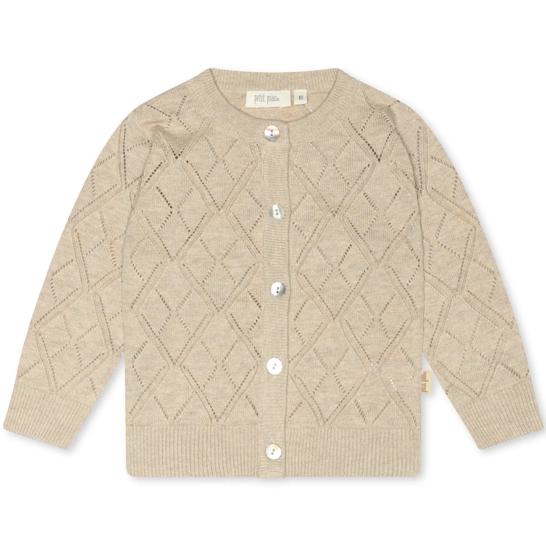 Petit Piao cardiganen er i en flot, varm beige nuance og er strikket med et flot pointelle mønster.