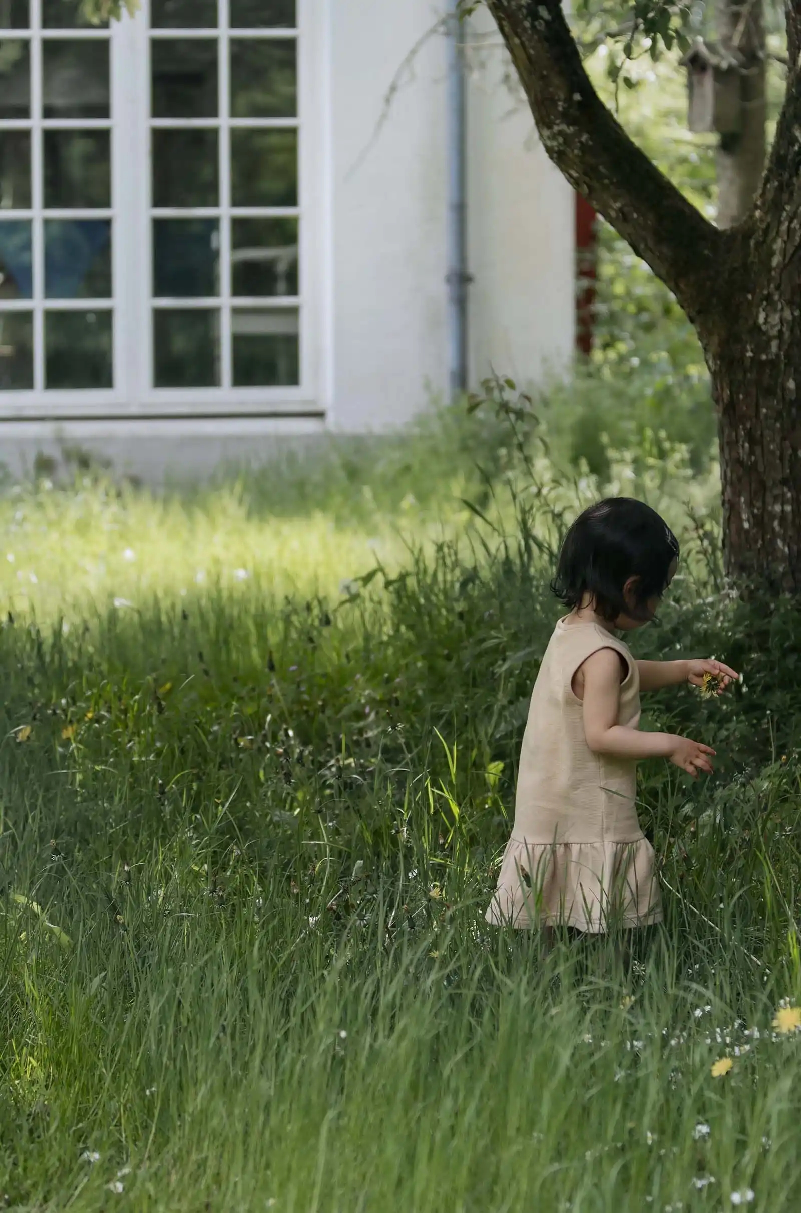 Det er en kjole med en god længde og med plads til leg og bevægelse.