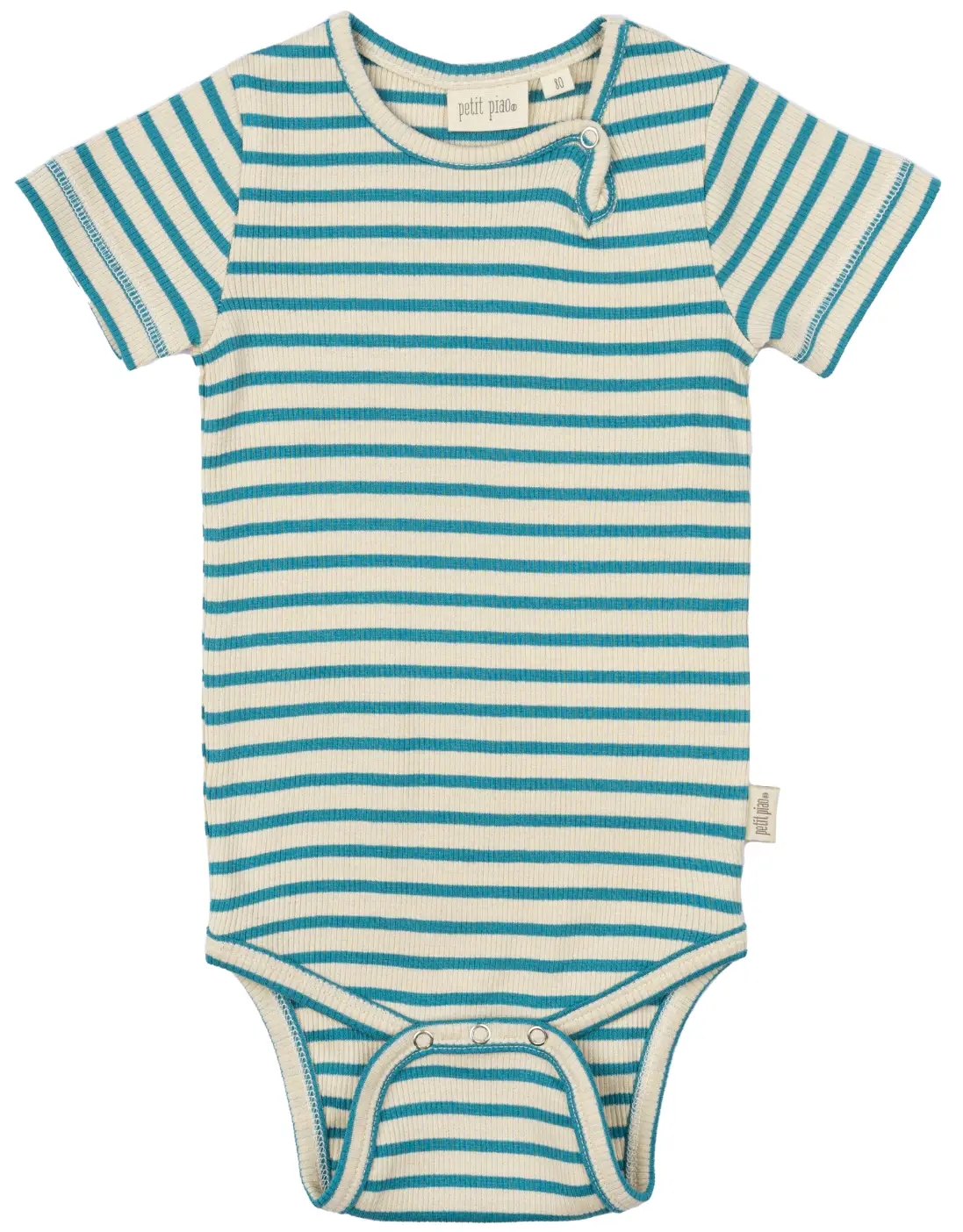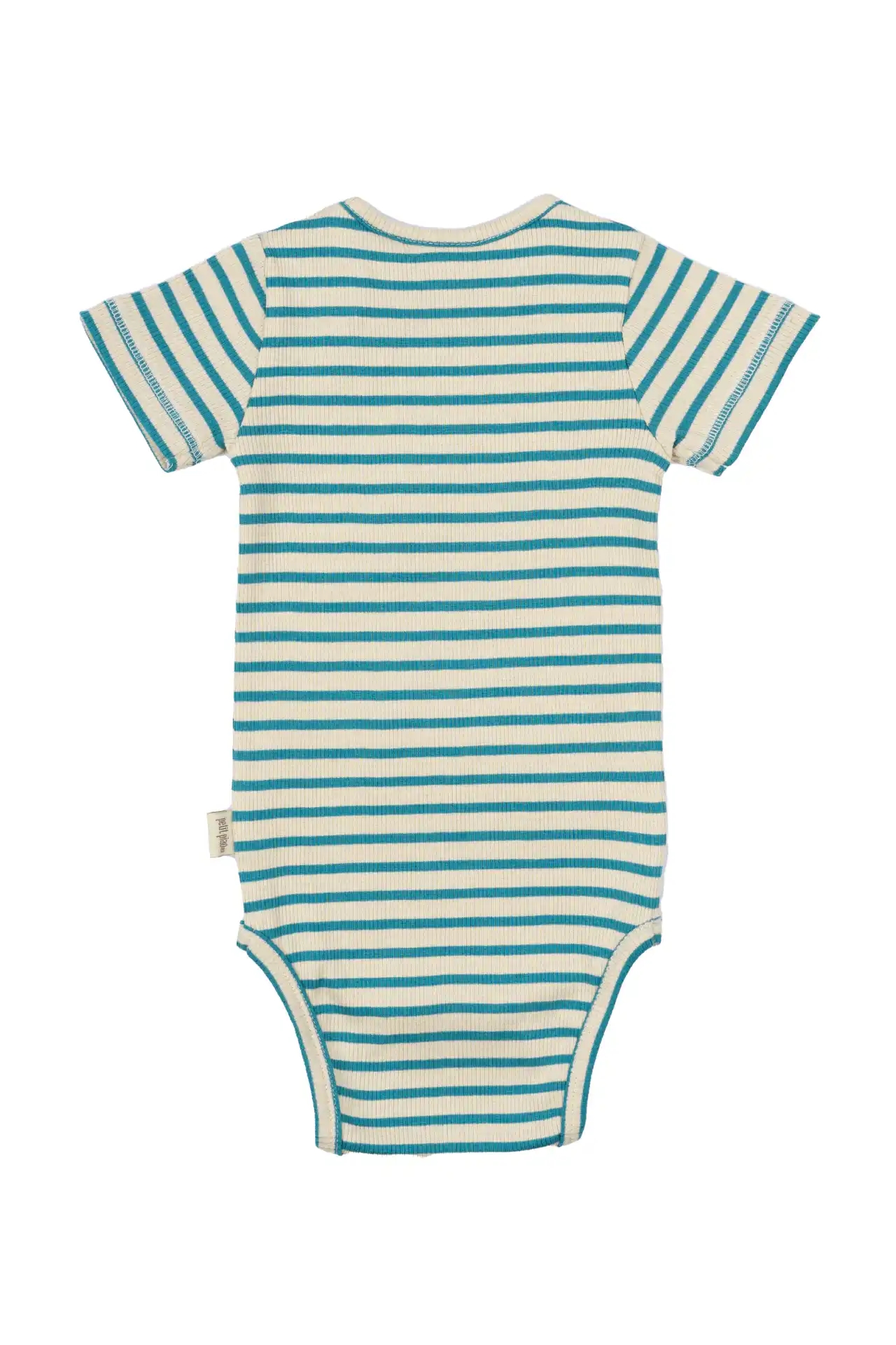 Petit Piao bodyen er med striber i flotte turkis og cremehvide nuancer.