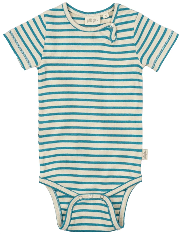 Petit Piao Kortærmet Body - Striber - Turquise/Dark off white