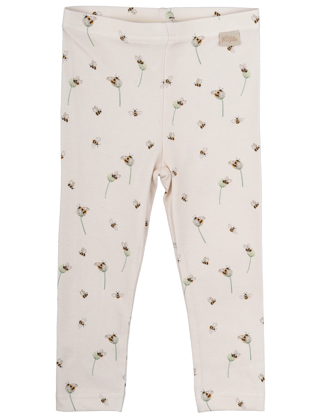 Petit Piao leggingsene er i cremehvid med et superfint, håndtegnet print af bier og blomster.