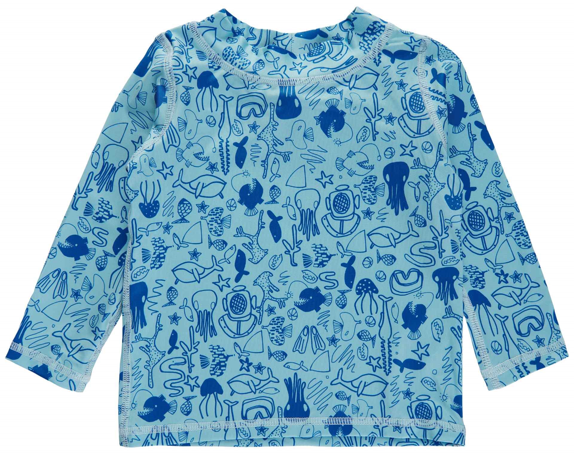 Badeblusen er i flotte blå farver og med et fint print inspireret af dykning og udforskning af havets liv.