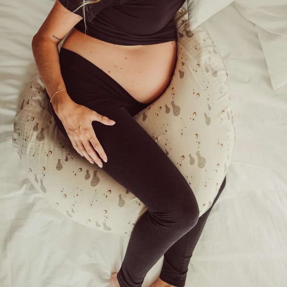 En lækker Thats Mine ammepude i cremehvid med et sødt print af luftballoner, måne og stjerner. Ammepudens blade er i en flot matchende beige farve.