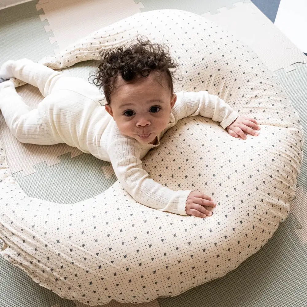 Thats Mine ammepuden er formet som en halvmåne, som giver en god støtte både under graviditeten og til den efterfølgende amning. Brug den som almindelig ammepude, som pudestol til baby, træn babys nakke eller brug den som lændestøtte til mor.
