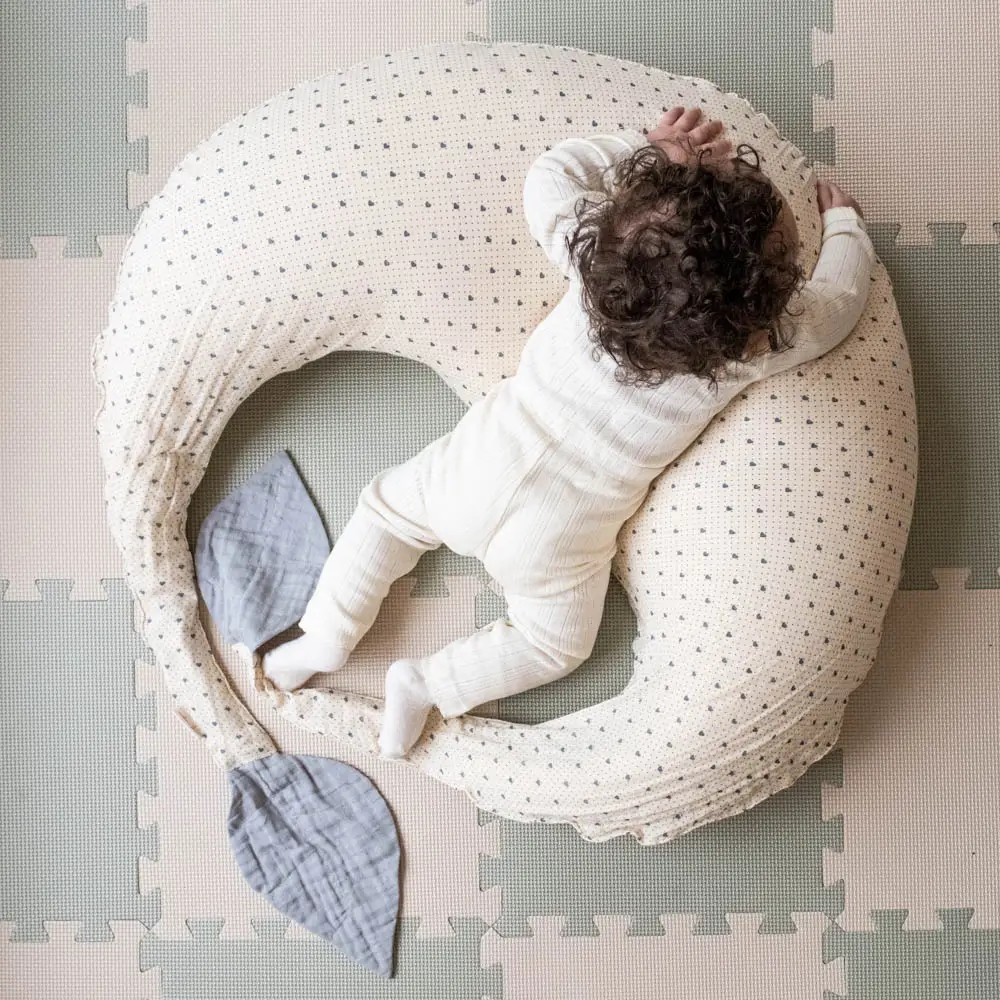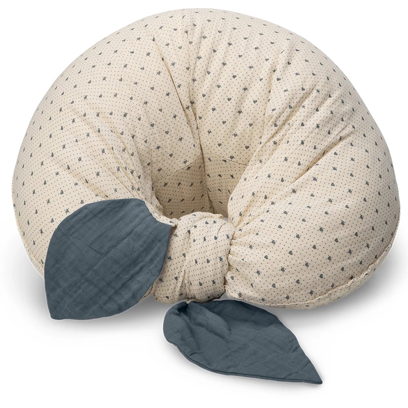 En lækker Thats Mine ammepude i cremehvid og med et fint print med små hjerter og prikker i støvet blå.