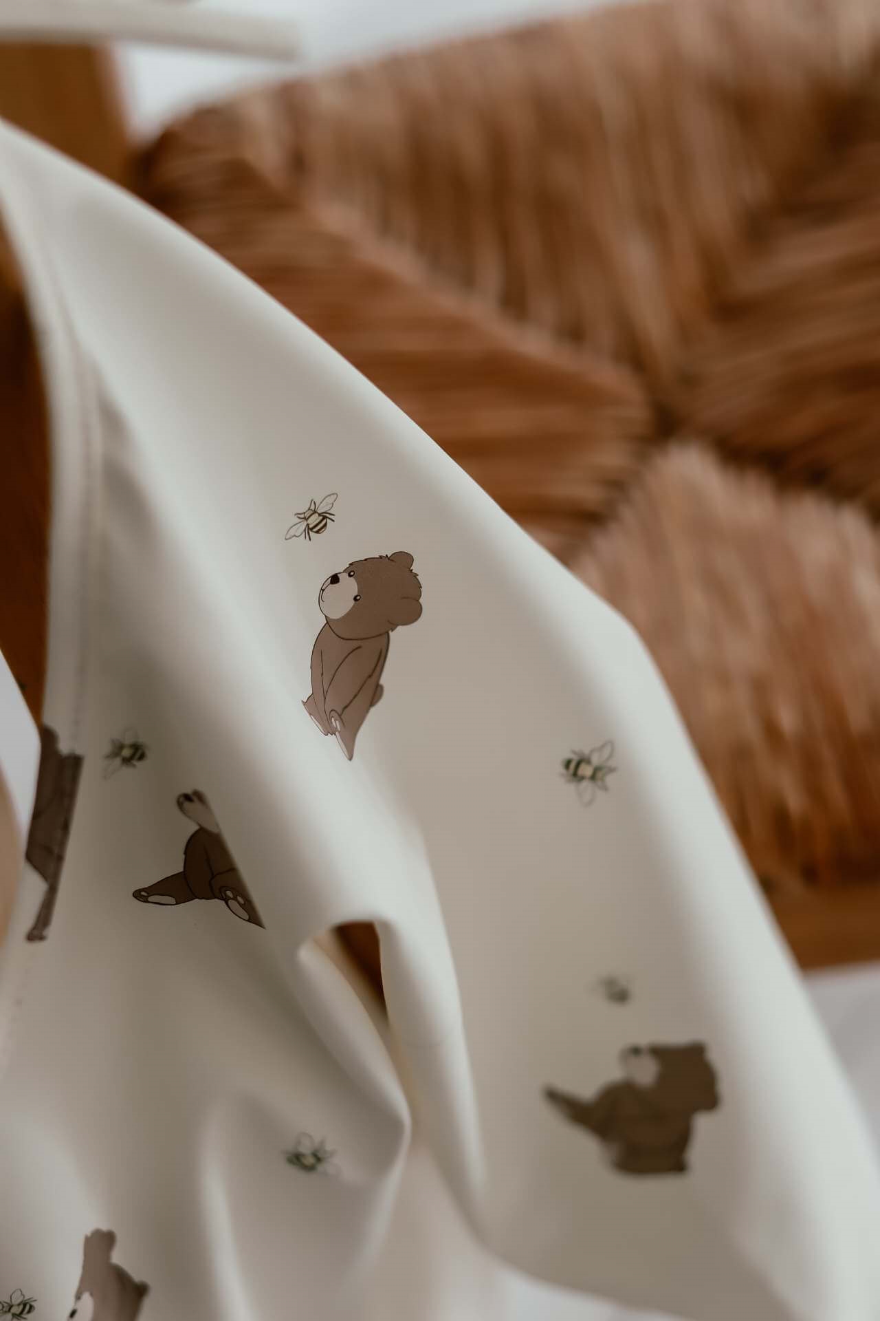 Thats Mine hagesmækken er i cremehvid med det fineste print med søde bamser og bier.