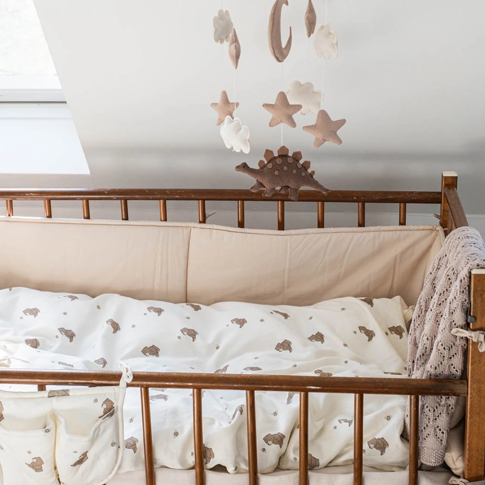Sengeranden fra Thats Mine er lavet i blødt økologisk bomuld yderst og blødt fyld af genanvendt polyester.