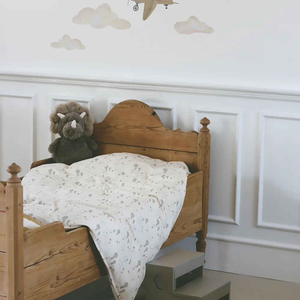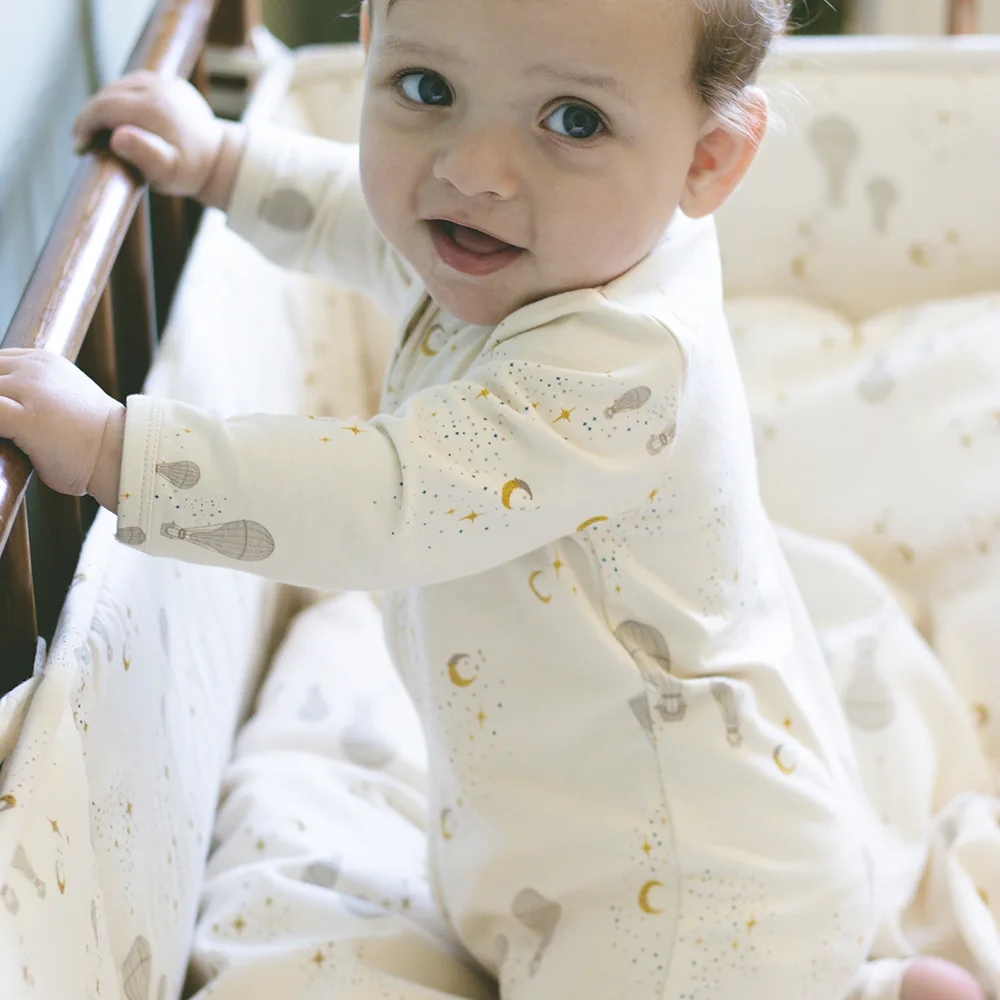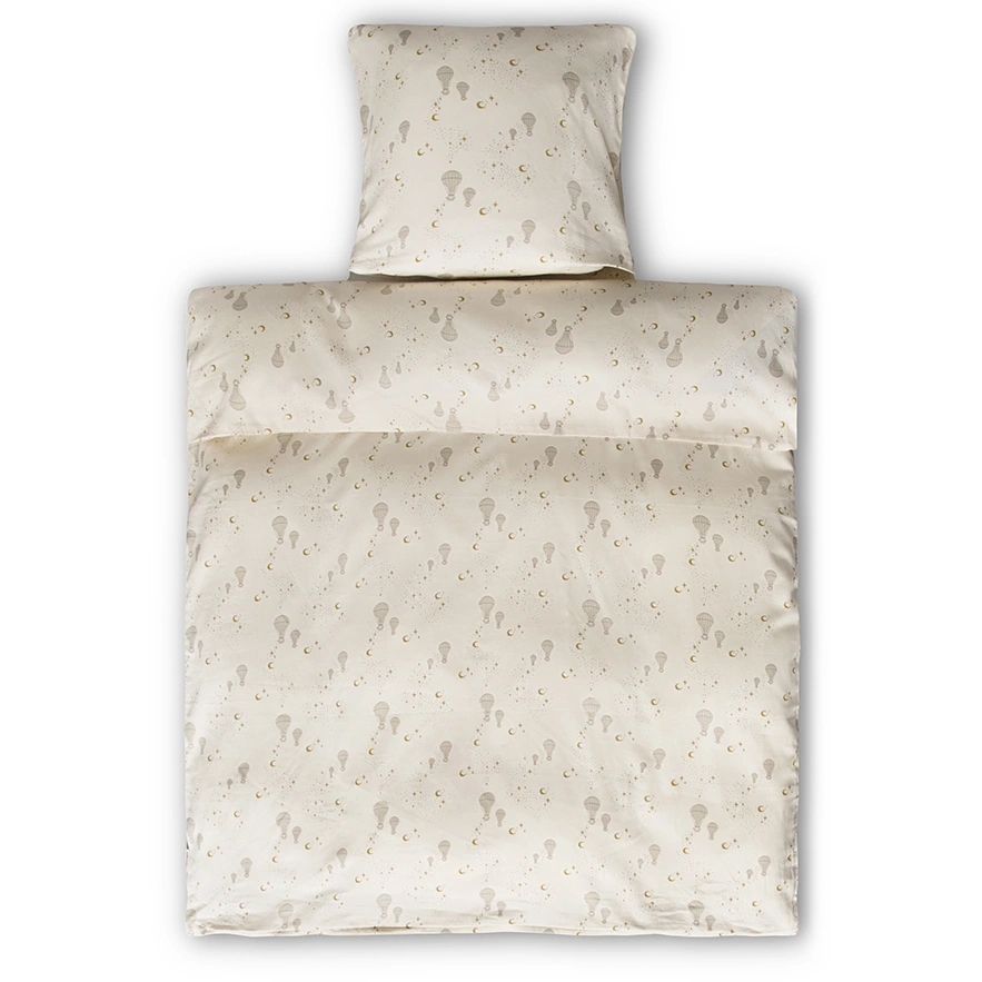 Thats Mine sengetøjet er til babysengen og er cremehvidt med et sødt print af luftballoner, måne og stjerner.
