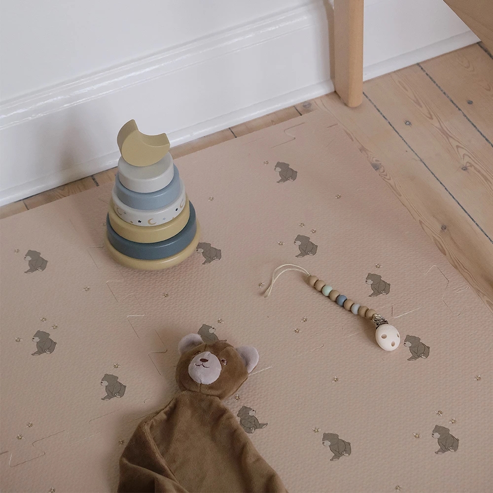 Et super fint Thats Mine skumgulv med printet Bees and Bears i varm beige med et sødt print med bamser og bier.