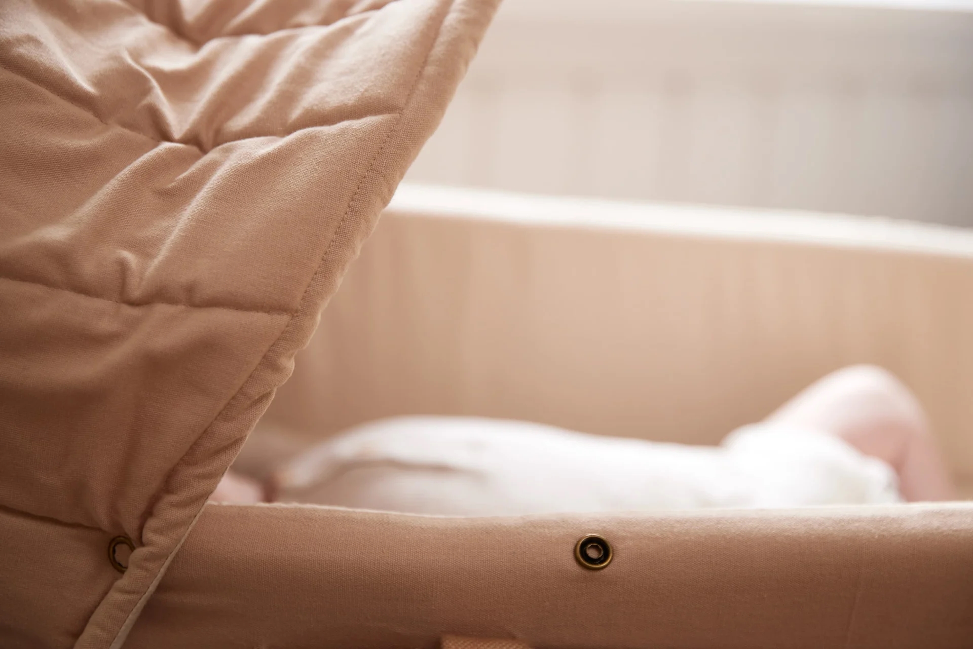 Kalechen monteres hurtigt med diskrete trykknapper og er fremstillet i GOTS-certificeret økologisk bomuld.