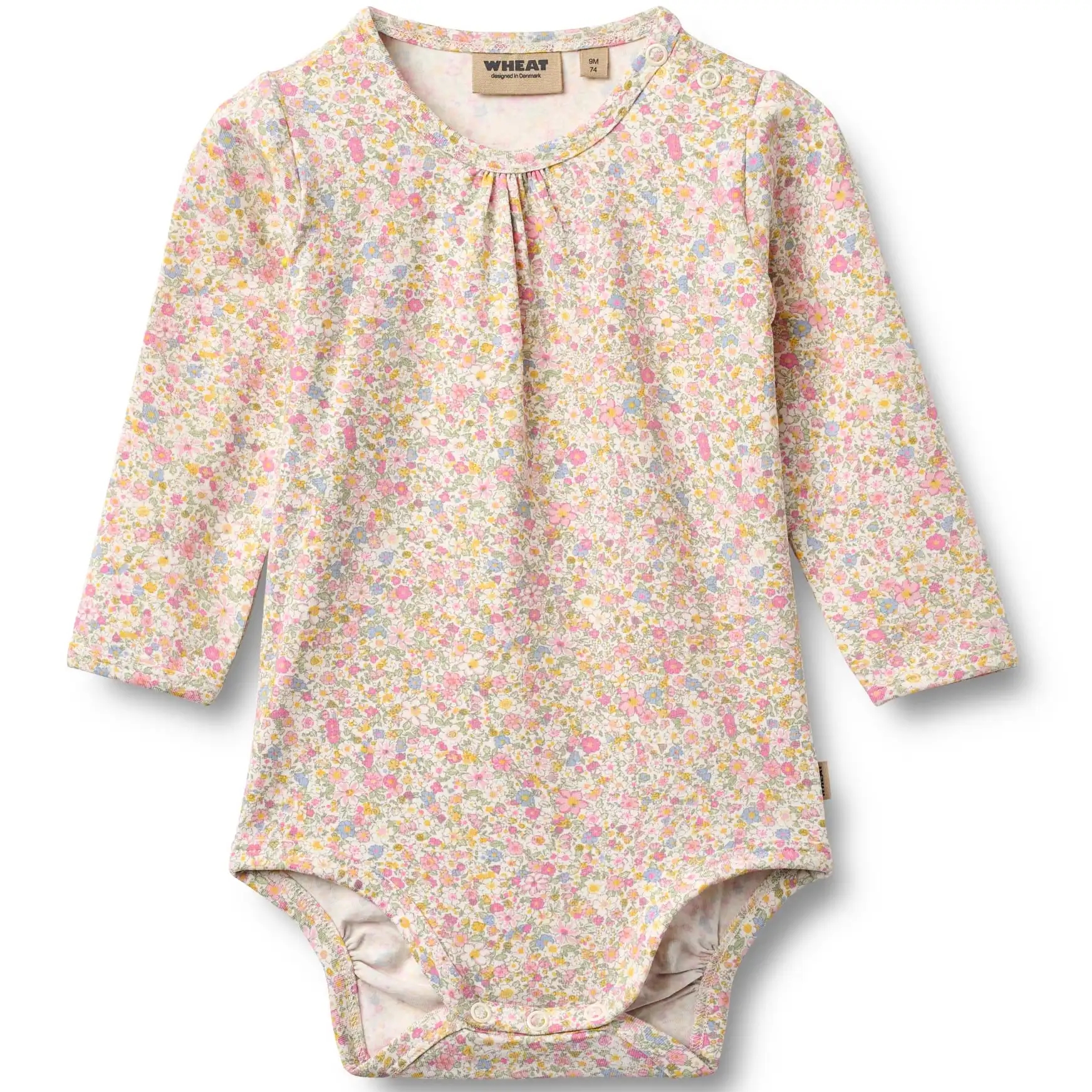En smuk Wheat body med blomsterprint i pastelfarver rosa, gul og blå.