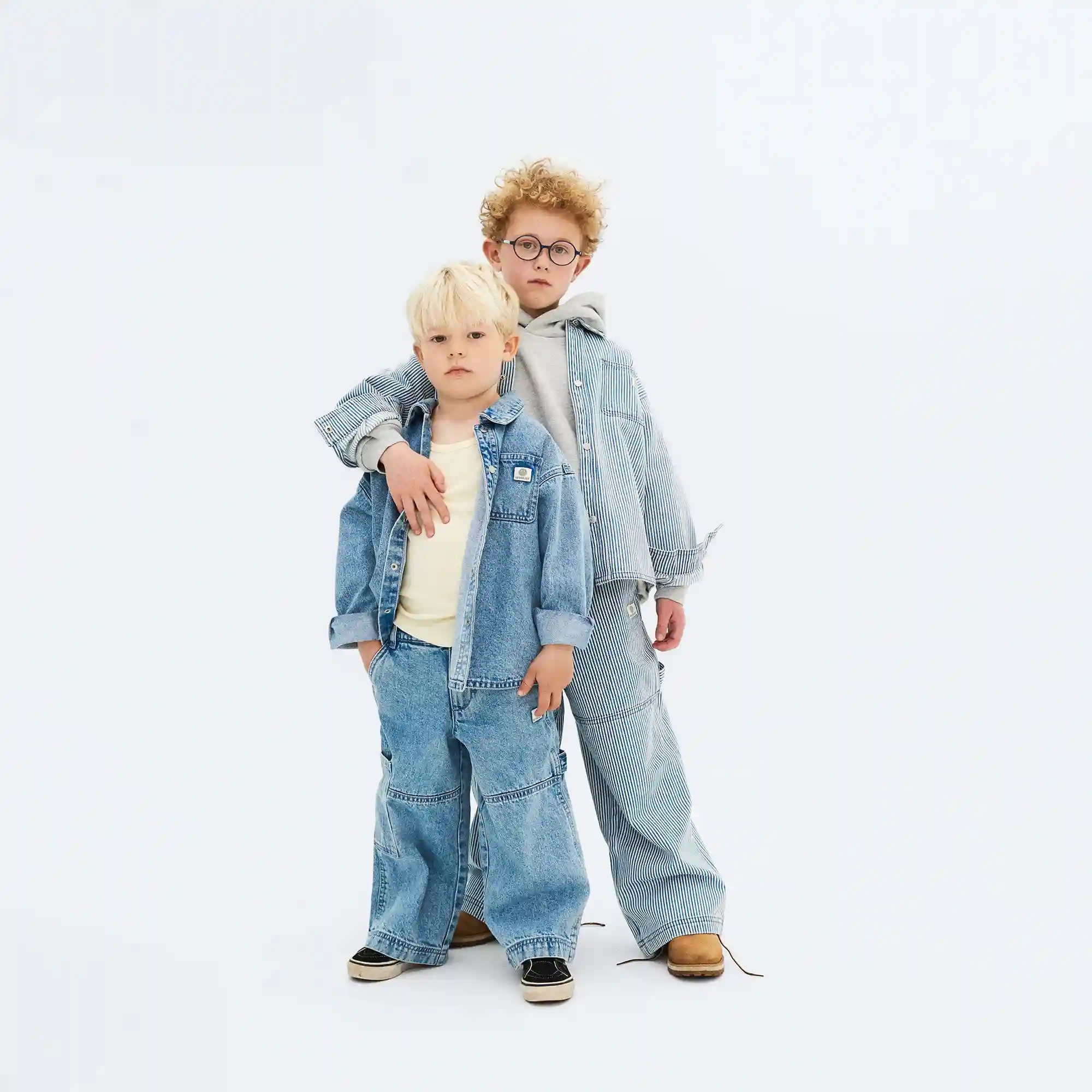 Fede Wheat cowboybukser i blåstribet denim til både drenge og piger.