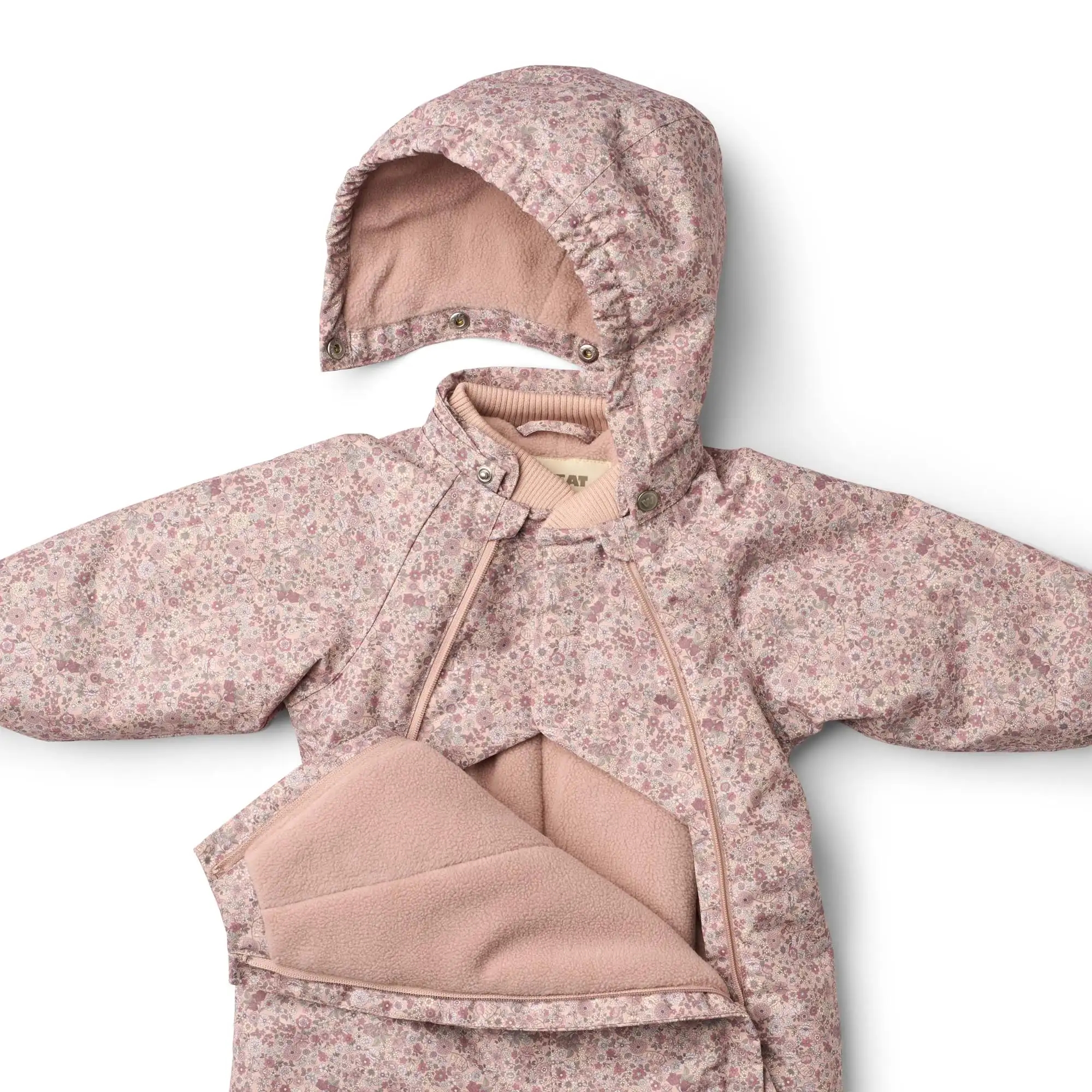 Wheat flyverdragten er med et virkelig fint blomsterprint i rosa nuancer og er lavet i høj kvalitet og har gode tekniske egenskaber. Den er åndbar, slidstærk, vindtæt og vandtæt for at sikre, at dit barn forbliver varmt og tørt i både regnfuldt og koldt vejr.