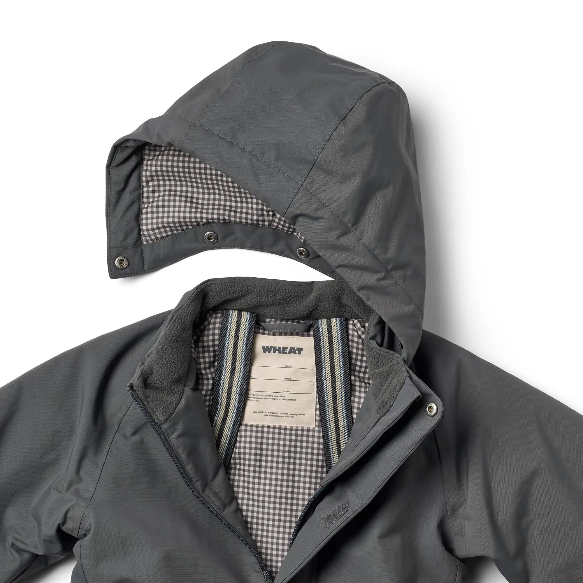 Wheat flyverdragten er i en lækker kvalitet og har gode tekniske egenskaber. Den er åndbar, slidstærk, vindtæt og vandtæt for at sikre, at dit barn forbliver varmt og tørt i det kolde efterårs- og vintervejr.
