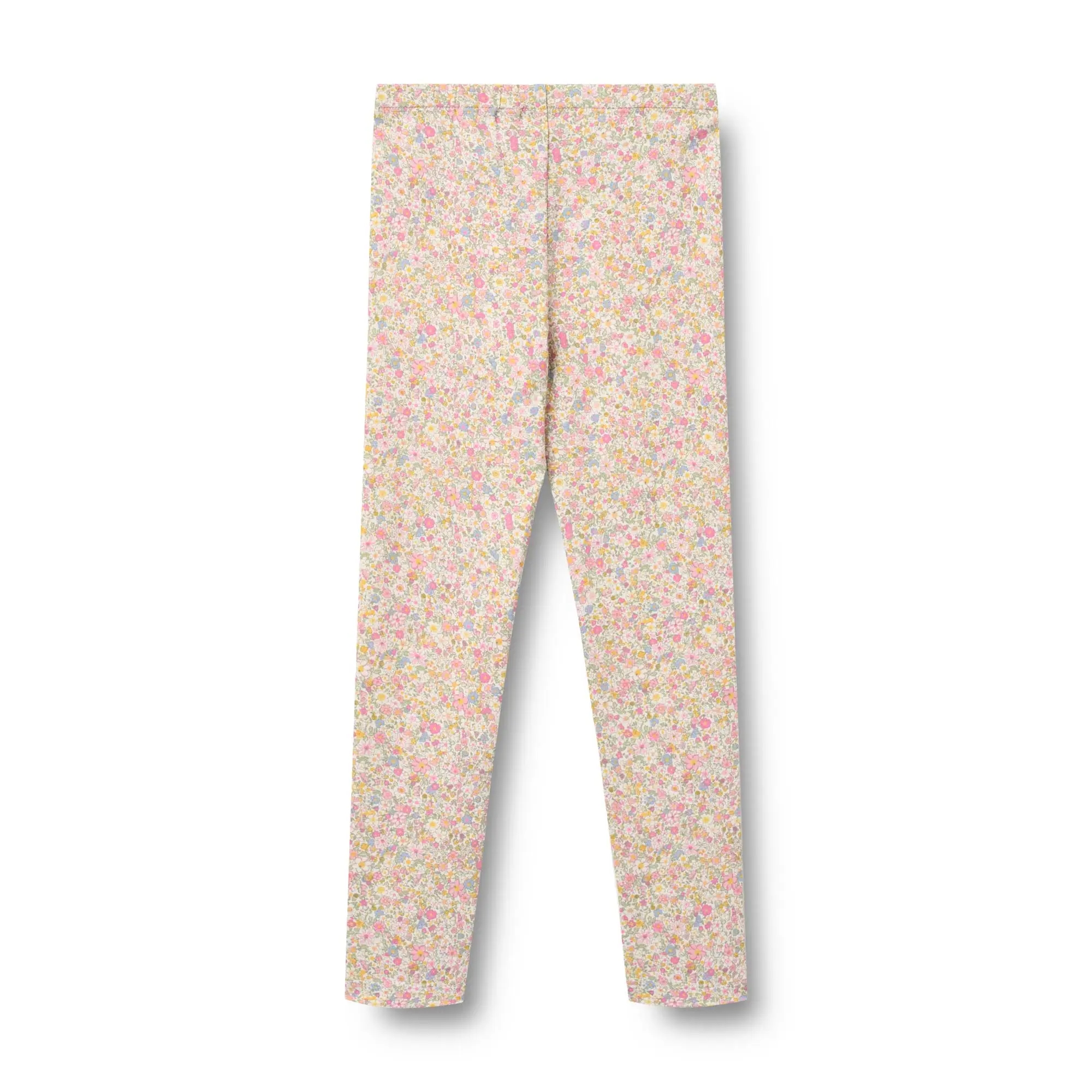 Smukke Wheat leggings med blomsterprint i pastelfarver rosa, gul og blå.