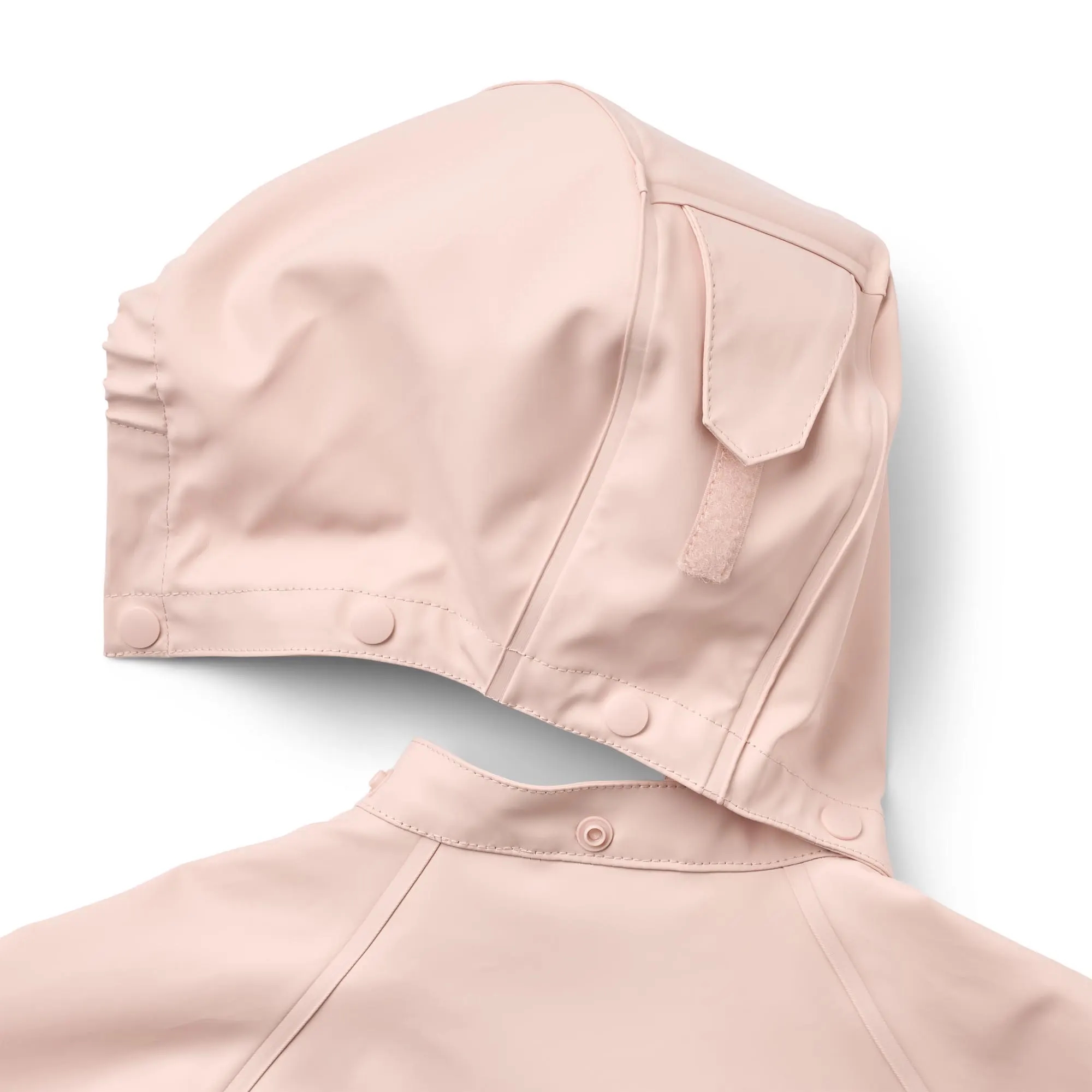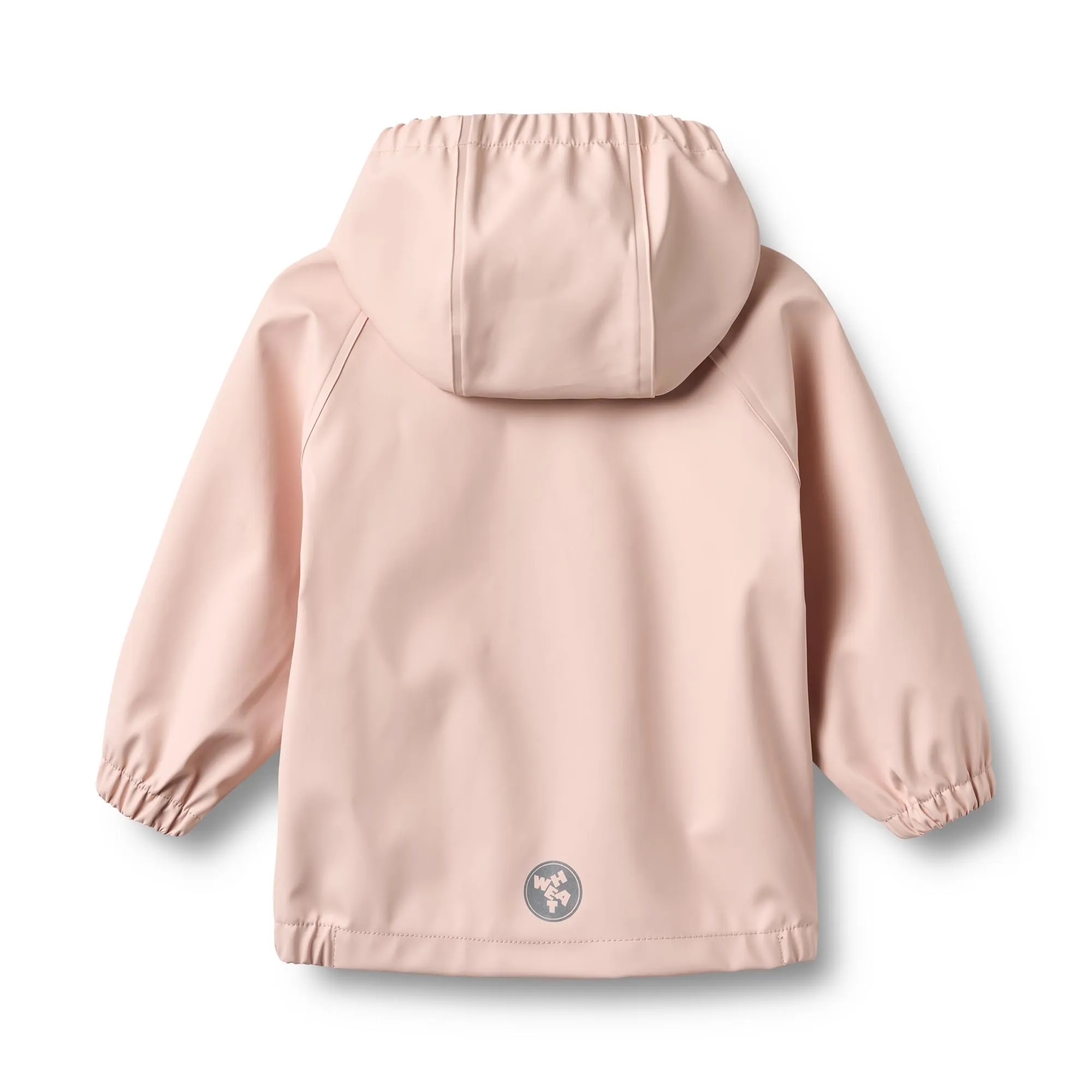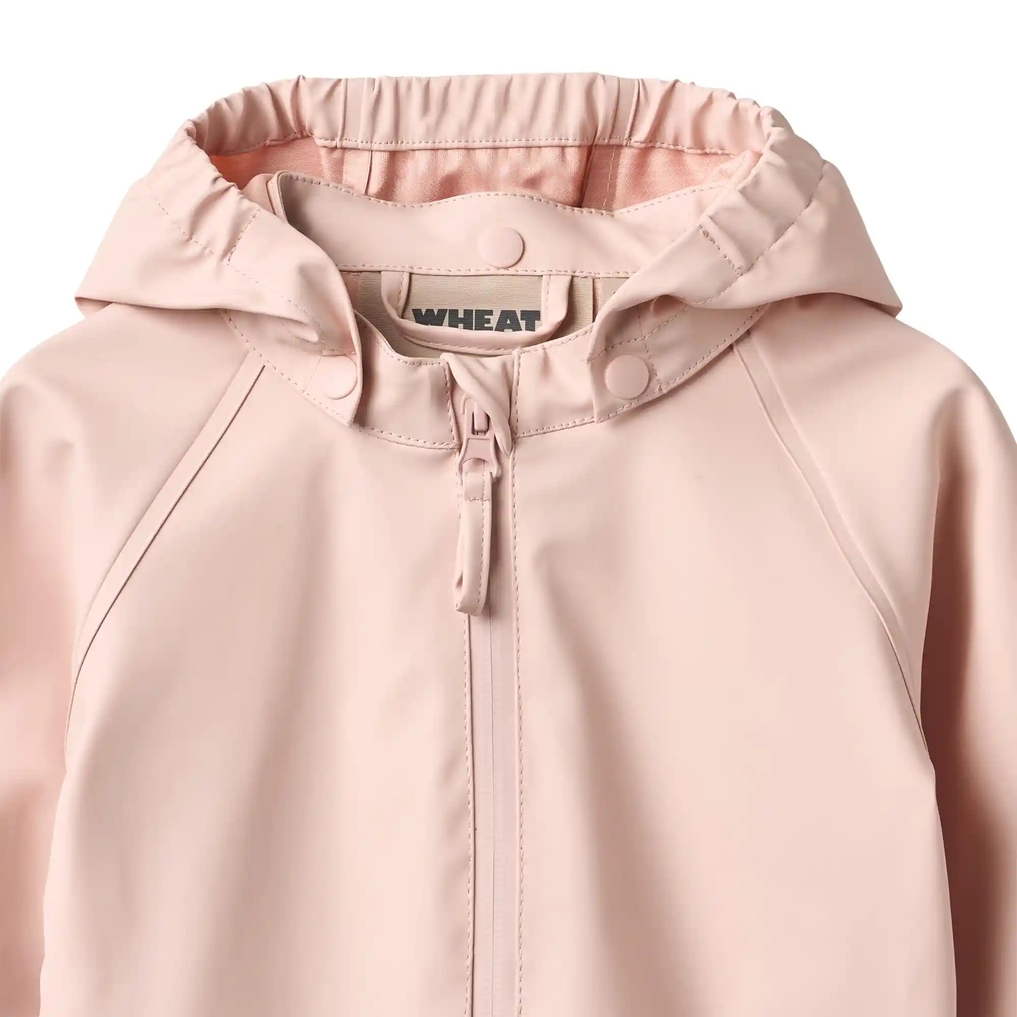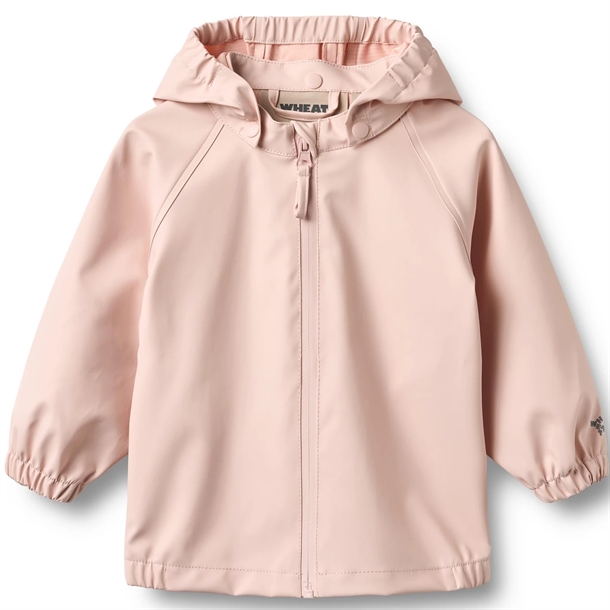 En praktisk Wheat regnjakke i en smuk, ensfarvet rosa nuance til de mindste op til størrelse 92.