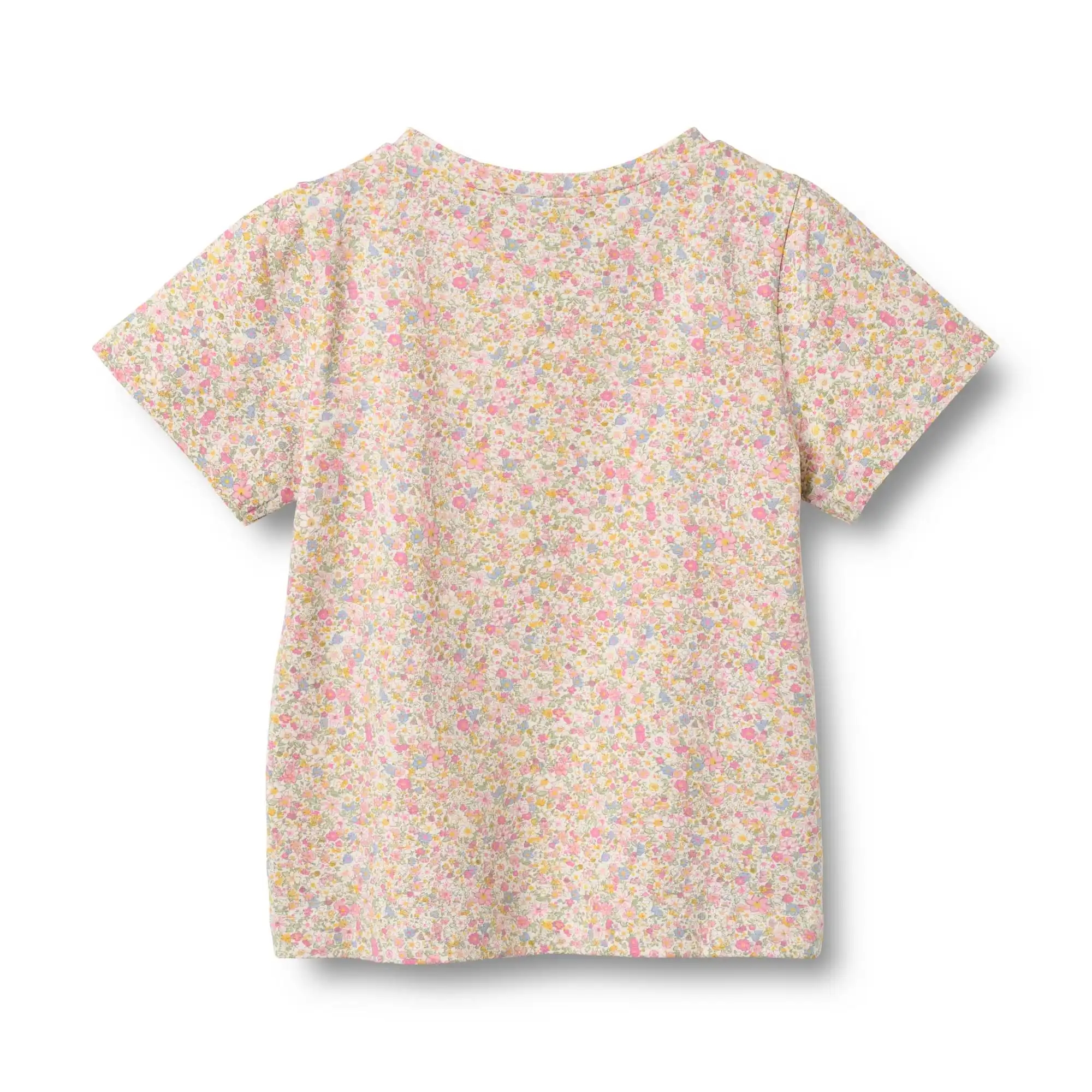 Super sød Wheat T-shirt med smukt blomsterprint i pastelfarver rosa, gul og blå.