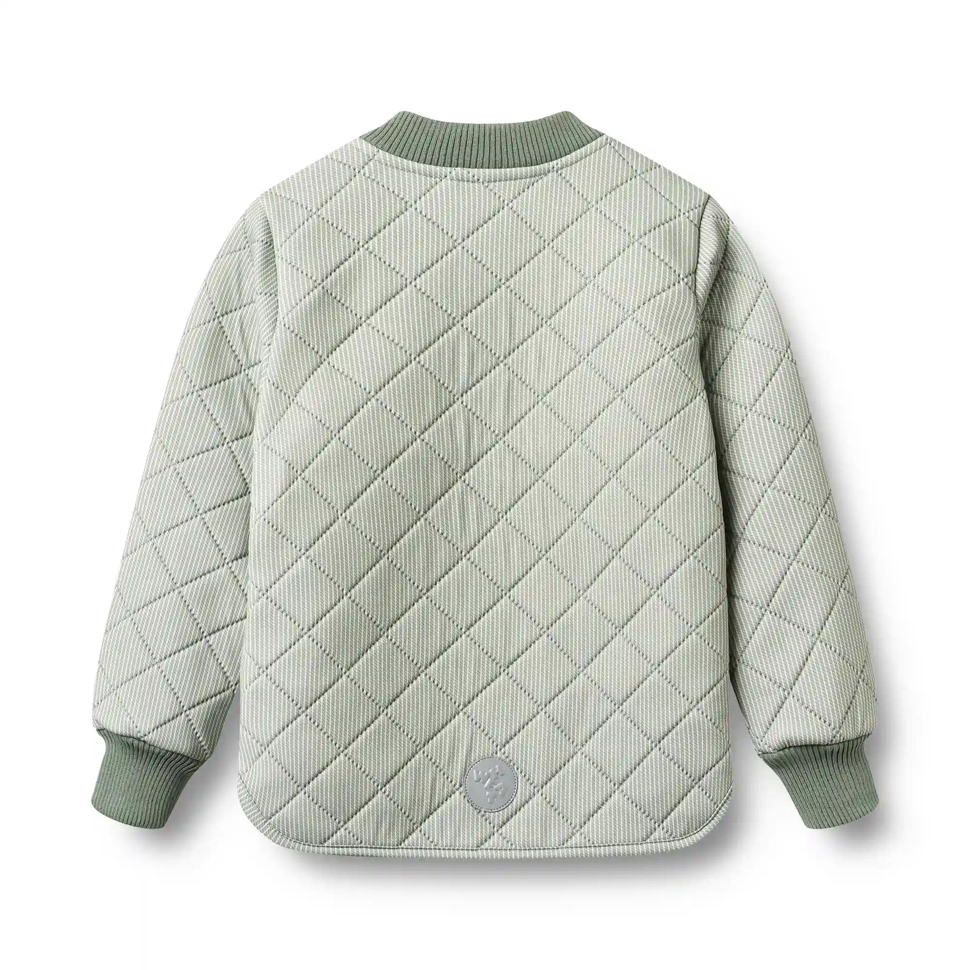 Wheat termojakken er grøn med lyse striber, samt grønne rib-kanter.