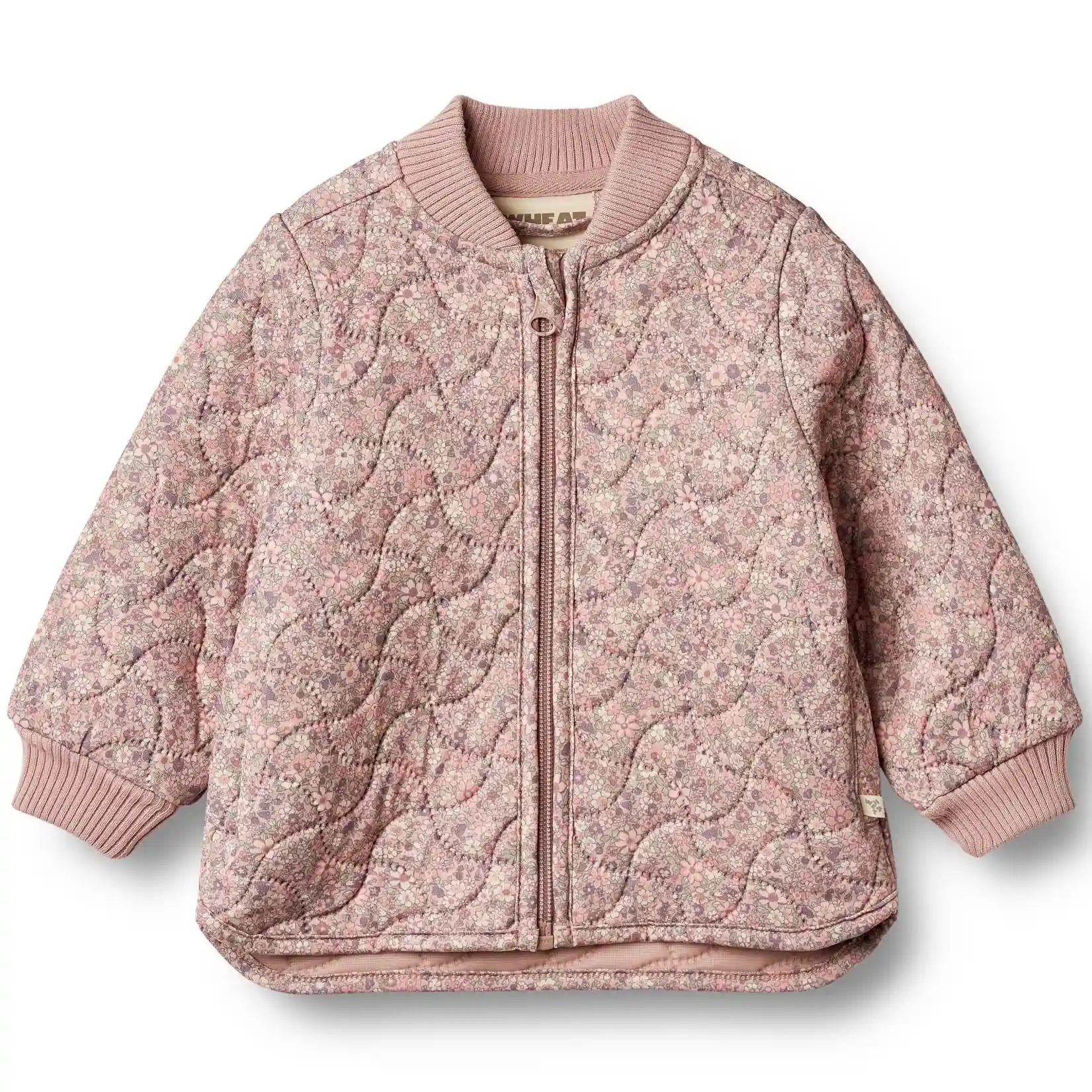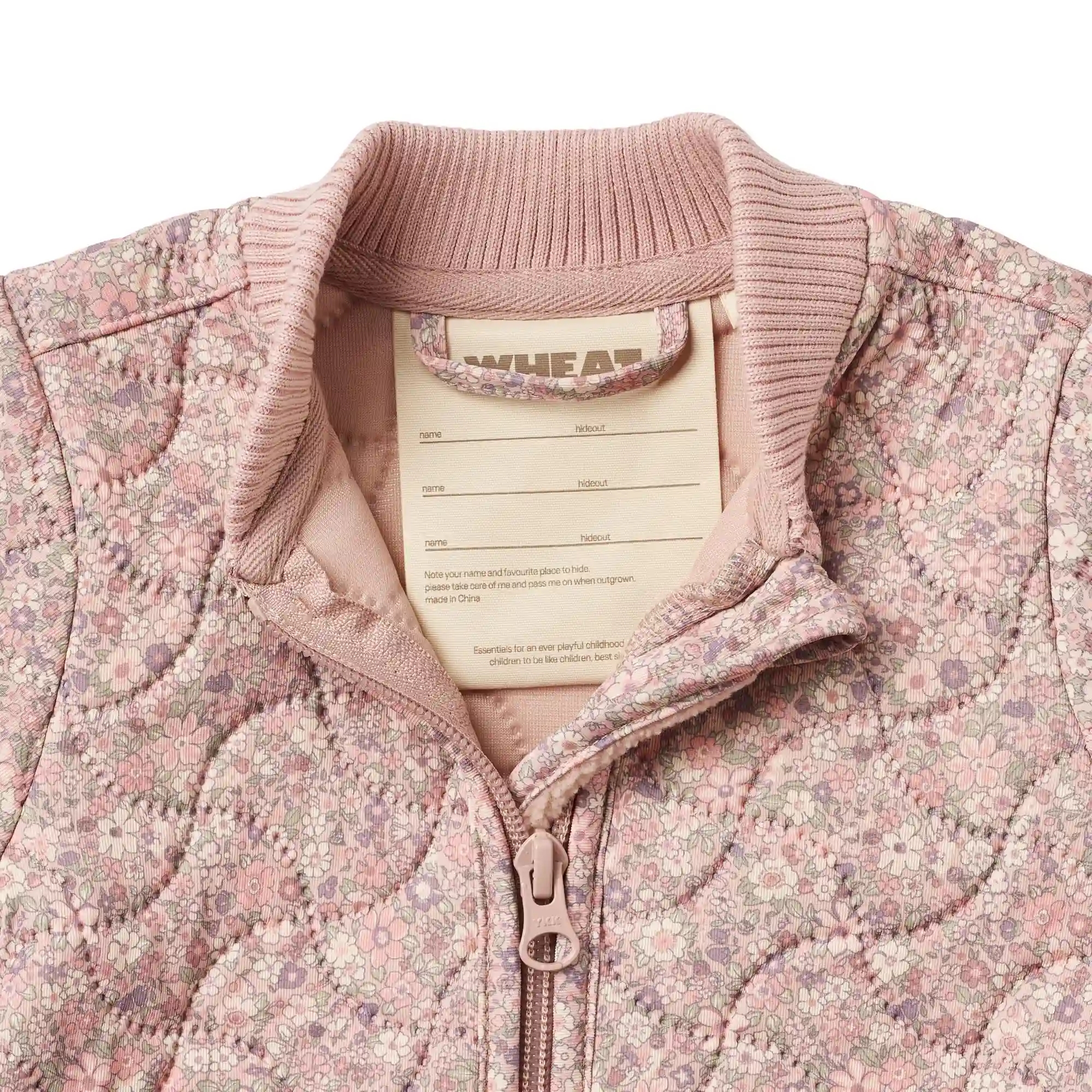 Wheat termojakken er i rosa med et smukt blomsterprint og er lavet med quiltet struktur i 3-lags materiale for ultimativ isolering.
